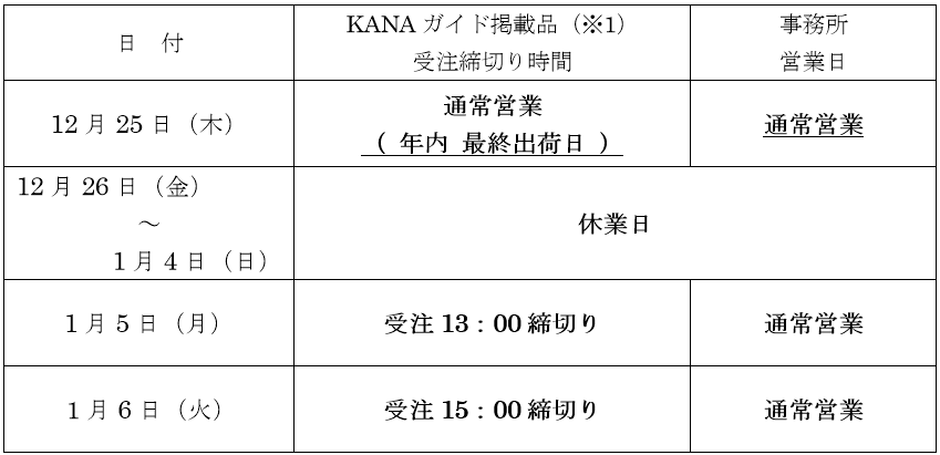 早速ですが、年末年始の受注締切時間変更をご案内申し上げます。